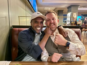 I talked to Dana and John McClellan to ask if I should say hi to Sugar Ray if I saw him in there. They’re like, “Yeah, you know, shoot your shot,” so I went in there and met up with the Eagle guys sitting at the bar. We talked for a second. I asked them if they were going to the dinner at the event, and they said they were heading over there in a few minutes.